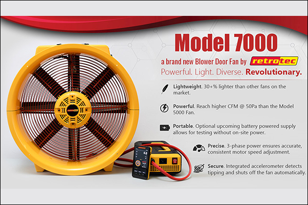 Retrotec’s brand new Model 7000 blower door fan redefines performance and portability.