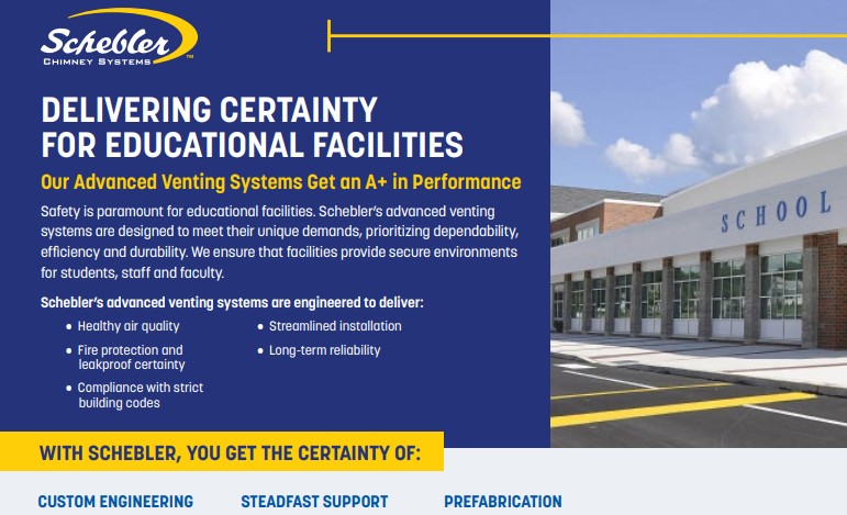 Schools deserve the certainty of Schebler. Our prefabricated chimney & exhaust systems enhance safety by improving air quality and fire protection. They ensure facilities provide secure environments for students, staff and faculty.