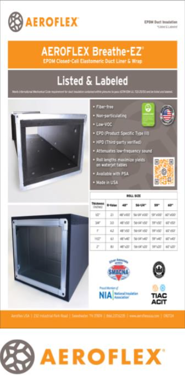 The International Mechanical Code (IMC) requires that duct insulation contained in plenum spaces pass ASTM E84 or UL 723 25/50 Flame Spread/Smoke Developed Index.