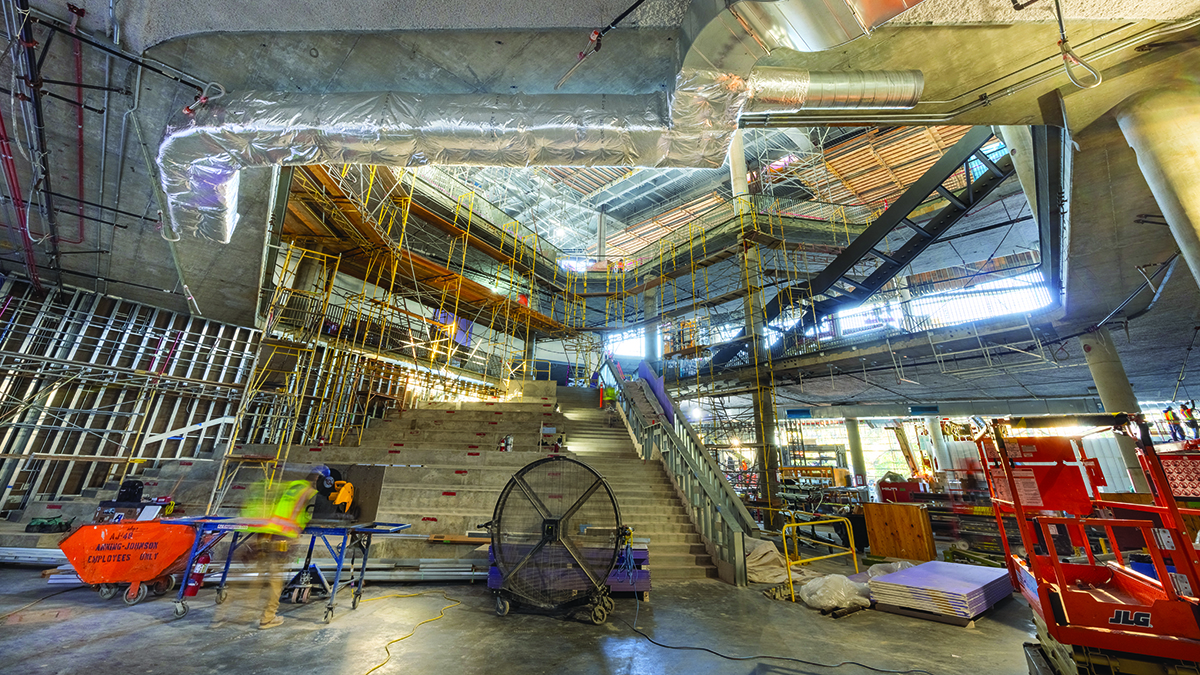 “The high ceilings and dense utilities meant we had to think differently,” Jong shares. “We’ve worked closely with our trade partners to share scaffolding and dance floors, ensuring accessibility while staying on schedule. These collaborations are critical to our success.”