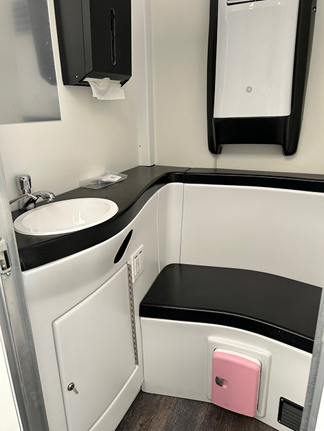 After looking into the concept, Muller learned the only models available were not suitable for outdoor use. The next step was to identify a manufacturer that could produce a pod that would weather the elements, while providing a sanitary indoor experience. Portability was also key, because Muller envisioned a trailer-ready pod that could be delivered to jobsites upon request.